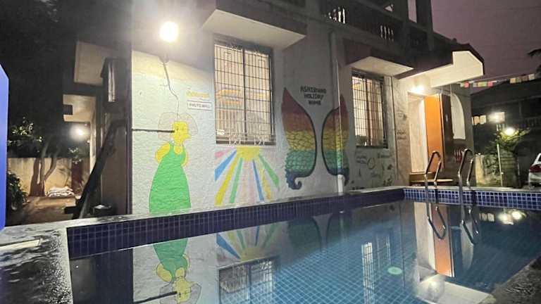 Das Ladakh House- 3 BHK Ladakh themed Villa near Matheran in Neral ist ein Ferienhaus, das Ihnen einen komfortablen und erholsamen Aufenthalt bietet. Mit einer Terrasse, einem Garten und kostenfreien Privatparkplätzen ist dieses Ferienhaus der perfekte Ort, um die Natur zu genießen und sich zu entspannen. Die gut ausgestattete Küche, das geräumige Wohnzimmer und die komfortablen Schlafzimmer sorgen für einen angenehmen Aufenthalt. Das Ferienhaus bietet auch 4 Badezimmer, darunter ein Whirlpool, um Ihren Aufenthalt noch angenehmer zu gestalten. Der Flughafen Mumbai ist etwa 78 km entfernt, was eine bequeme Anreise ermöglicht.