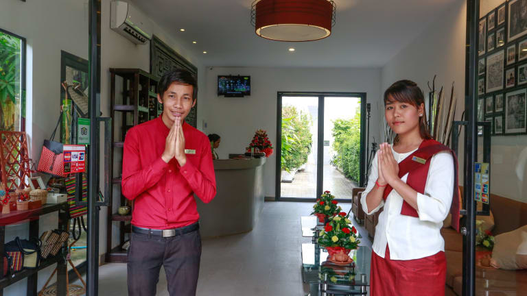 Das Ladear Privilege Rooms in Siem Reap ist der ideale Ort, um dem Trubel der Stadt zu entkommen und sich inmitten privater Gärten zu entspannen. Hier erwarten Sie stilvolle Zimmer mit Blick auf den tropischen Garten und den Außenpool. Genießen Sie regionale Khmer-Gerichte im hoteleigenen Restaurant und lassen Sie sich im Spa verwöhnen. Das freundliche Personal steht Ihnen rund um die Uhr zur Verfügung und organisiert gerne Ausflüge und Aktivitäten für Sie.
