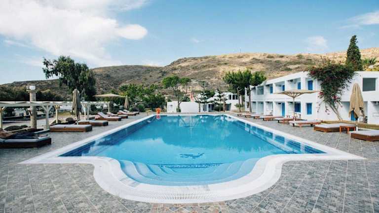 Das Lagada Beach Hotel in Adamas, Milos, bietet seinen Gästen eine ideale Lage direkt am Strand und nur wenige Gehminuten vom Hafen und der Stadt entfernt. Die Zimmer sind modern und komfortabel eingerichtet und bieten entweder einen atemberaubenden Blick auf das Meer oder die gepflegten Hotelgärten. Das Hotel verfügt über einen Meerwasserpool und WLAN ist in allen Zimmern und an der Rezeption kostenlos verfügbar. Gäste können auch von den Empfehlungen des freundlichen Personals profitieren, sei es bei der Organisation von Ausflügen oder der Suche nach Restaurants.