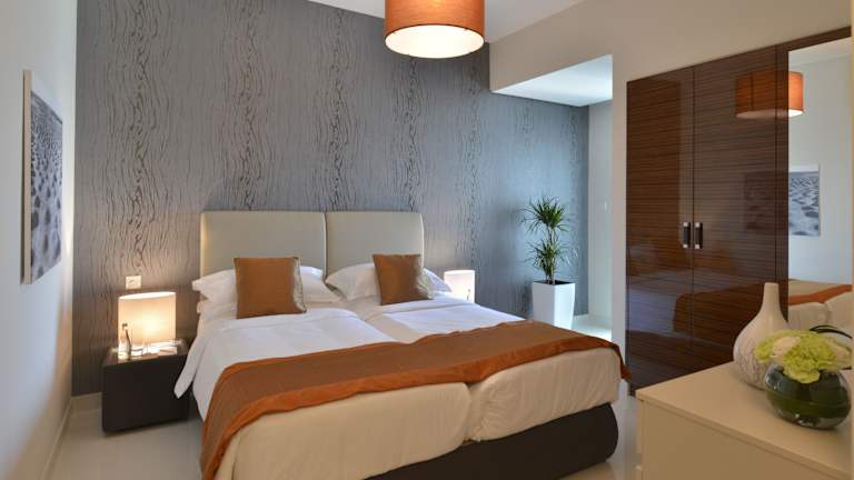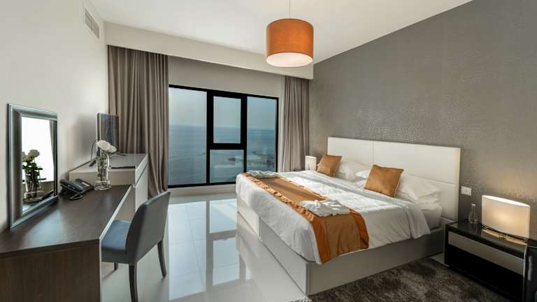 Die Zimmer sind mit Klimaanlage, Heizung, einem Balkon oder einer Terrasse mit Meerblick, einem Doppelbett, Queensize-Bett oder Kingsize-Bett ausgestattet. Zu den Annehmlichkeiten gehören ein Safe, eine Minibar, ein Schreibtisch, eine Kochnische mit Kühlschrank, Herd und Mikrowelle, sowie eine Waschmaschine und ein Bügelset. Im Badezimmer stehen eine Dusche, eine Badewanne, Kosmetikartikel und ein Haartrockner zur Verfügung.