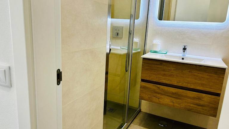 Die Ferienwohnung umfasst ein Schlafzimmer, eine Küche mit Kühlschrank und Oven, einen TV, einen Sitzbereich sowie ein Badezimmer, das mit einer Badewanne oder Dusche ausgestattet ist. Handtücher und Bettwäsche werden bereitgestellt. Zudem gibt es einen Balkon.