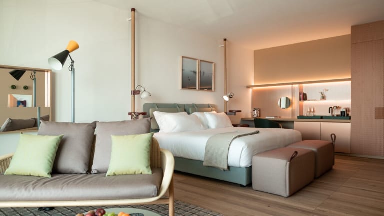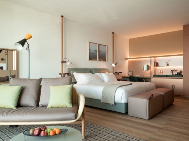 Die klimatisierten Zimmer in der Unterkunft sind mit einem Schreibtisch, einer Kaffeemaschine, einer Minibar, einem Safe, einem Flachbild-TV, einer Terrasse und einem eigenen Badezimmer mit einem Bidet ausgestattet. Einige Zimmer bieten Meerblick und alle Zimmer sind mit einem Balkon versehen. Zu den weiteren Ausstattungsmerkmalen der Gästezimmer gehören ein Kleiderschrank und ein Wasserkocher.