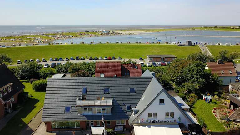Die Umgebung von Büsum bietet viele Möglichkeiten für sportliche Aktivitäten und Freizeitunternehmungen. Wassersportliebhaber können in der Nordsee surfen, segeln oder angeln. Es gibt auch schöne Radwege entlang der Küste, auf denen Sie die Umgebung erkunden können. Für Familien ist das Erlebnisbad Piraten Meer ein beliebtes Ausflugsziel, das nur einen kurzen Spaziergang vom Hotel entfernt liegt. Hier können Sie sich im Wasser austoben und Spaß haben.