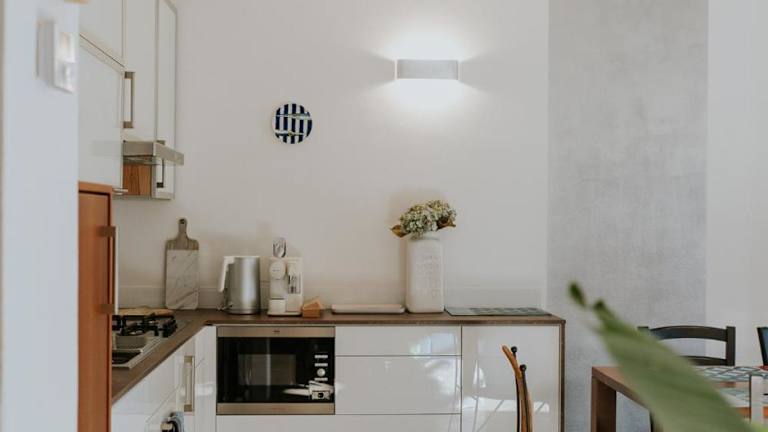 Die Ferienwohnung umfasst ein Schlafzimmer, ein Wohnzimmer und eine voll ausgestattete Küche, die mit einem Kühlschrank und einer Kaffeemaschine ausgestattet ist. Außerdem stehen ein Badezimmer mit Bidet und Dusche sowie Handtücher und Bettwäsche bereit.