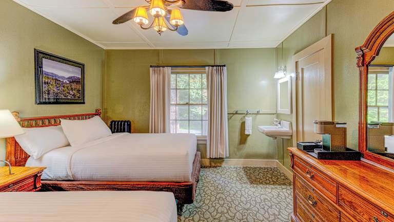 Die Lodge verfügt über insgesamt 92 Zimmer, die gemütlich und rustikal eingerichtet sind. Die Zimmer bieten entweder Seeblick oder seitlichen Seeblick und sind mit einem Fernseher, einem eigenen Bad mit Badewanne oder Dusche sowie einem Balkon oder einer Terrasse mit Sitzgelegenheit ausgestattet.