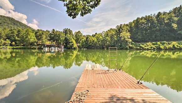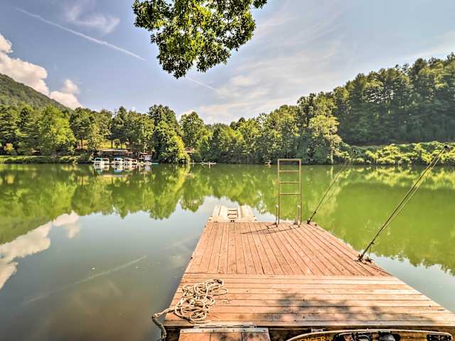 Die Unterkunft Lake Santeetlah Escape with Kayaks, Boat Slip and More befindet sich in Robbinsville, North Carolina, mit Blick auf den See.