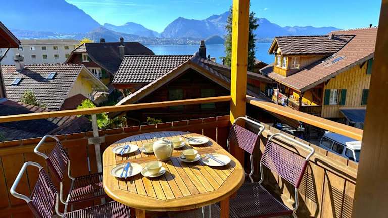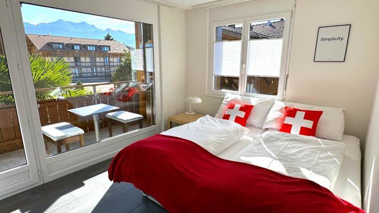 SwissHut Stunning Views Alps Lake - Apart. Innerdorf bietet Übernachtungsmöglichkeiten in einer Ferienwohnung mit kostenlosem WLAN und einem TV. Die Unterkunft begeistert mit einem Balkon und ist besonders für ihren Blick auf die Alpen und den See bekannt. Junggesellen- und ähnliche Feiern sind nicht erlaubt und es gilt eine Mindestaltergrenze für den Check-in.