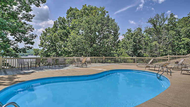 Lake View and Boat Slip Osage Beach Retreat! bietet klimatisierte und komfortable Übernachtungsmöglichkeiten im Erdgeschoss. Die Unterkunft verfügt über einen Balkon mit Seeblick und kostenloses WLAN. Ein Pool steht den Gästen zur Verfügung. Das Haus ist eine Nichtraucherunterkunft und besondere Veranstaltungen wie Junggesellen- oder Junggesellinnenabschiede sind nicht erlaubt. Der Mindestalter für den Check-in beträgt 25 Jahre.