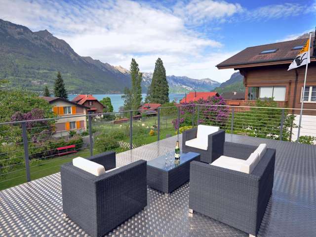 Das Lake View Chalet befindet sich in Bönigen und bietet Ihnen eine idyllische Lage inmitten der Natur. Von der großzügigen Terrasse aus können Sie den Blick auf die umliegenden Berge und den See genießen. Die Umgebung lädt zu Aktivitäten wie Wandern, Radfahren und Bootsfahrten ein. In der Nähe finden Sie auch verschiedene Sehenswürdigkeiten und Ausflugsziele, darunter die Stadt Bern und das Kurort Leukerbad. Der Flughafen Bern-Belp ist nur 40 km entfernt und bietet eine bequeme Anreisemöglichkeit.