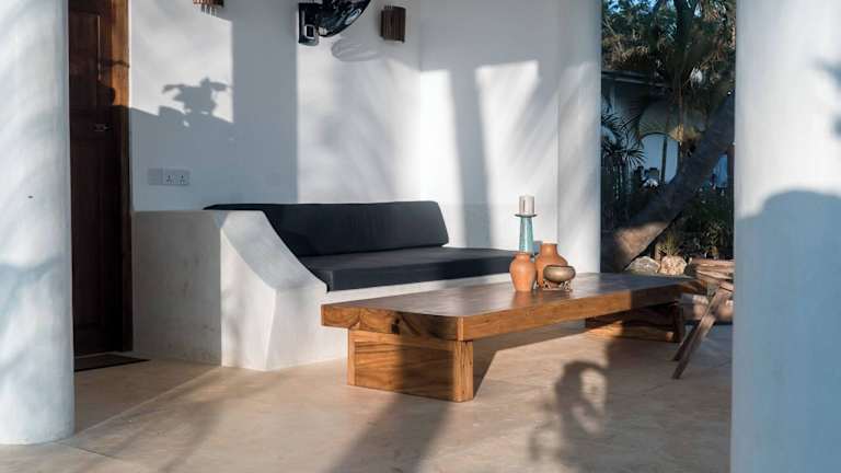 Die Villa umfasst zwei Schlafzimmer, ein Wohnzimmer sowie eine gut ausgestattete Küche mit Kühlschrank. Handtücher und Bettwäsche werden bereitgestellt.