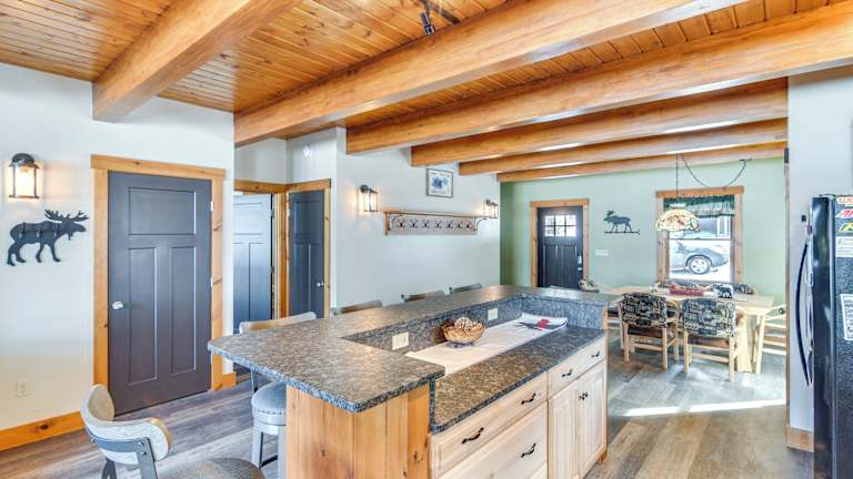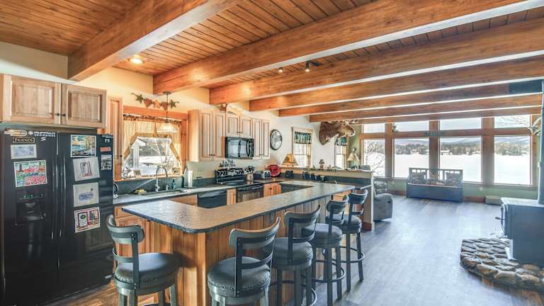 Lakefront New Hampshire Hideaway mit Veranda und Seeblick. Das Ferienhaus bietet komfortable Übernachtungsmöglichkeiten für größere Gruppen oder Familien.