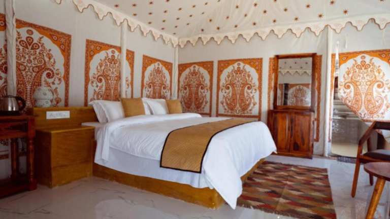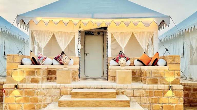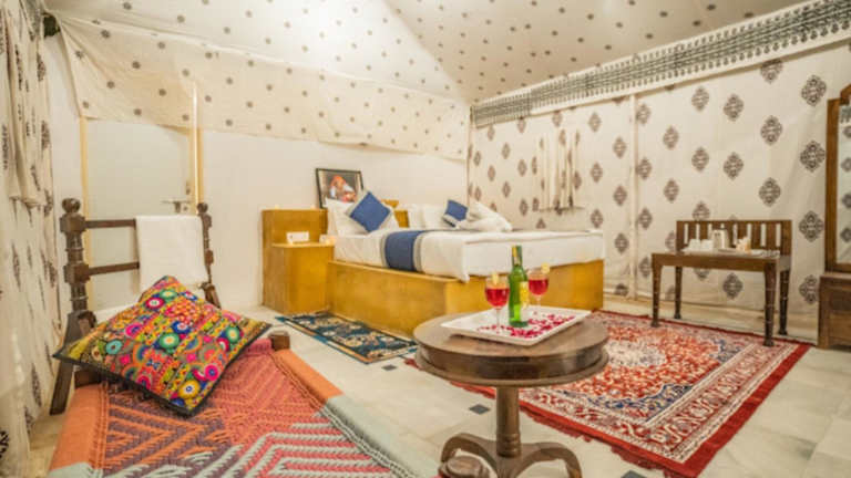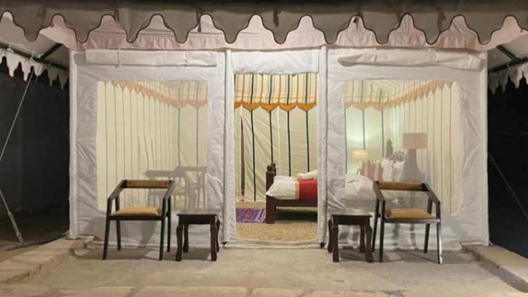 Das Lakhina Heritage Desert Camp liegt nur 1,5 km von der beeindruckenden Festung Jaisalmer entfernt, was es zu einem idealen Ausgangspunkt für die Erkundung der Stadt macht. In der Nähe befinden sich auch die historischen Patwon Ki Haveli und Salim Singh Ki Haveli, die Sie bequem zu Fuß erreichen können. Der Flughafen Jaisalmer ist nur 4 km entfernt, was eine bequeme Anreise ermöglicht.
