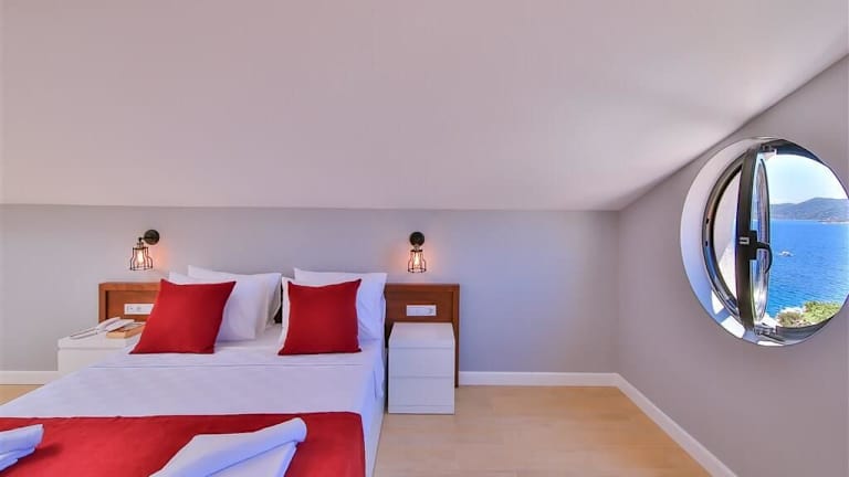 Das Lale Hotel liegt nur 90 m vom kleinen Kiesstrand entfernt und bietet einen bequemen Zugang zum Meer und zur Küste. In der Nähe befinden sich auch der große Kiesstrand, der Lykische Felsenfriedhof und die Löwengräber von Kaş. Die Umgebung bietet viele Möglichkeiten zum Schwimmen, Sonnenbaden und Erkunden der historischen Sehenswürdigkeiten. Der Strand Ince Bogaz Cinar und die versunkene Stadt Kekova sind ebenfalls leicht zu erreichen.