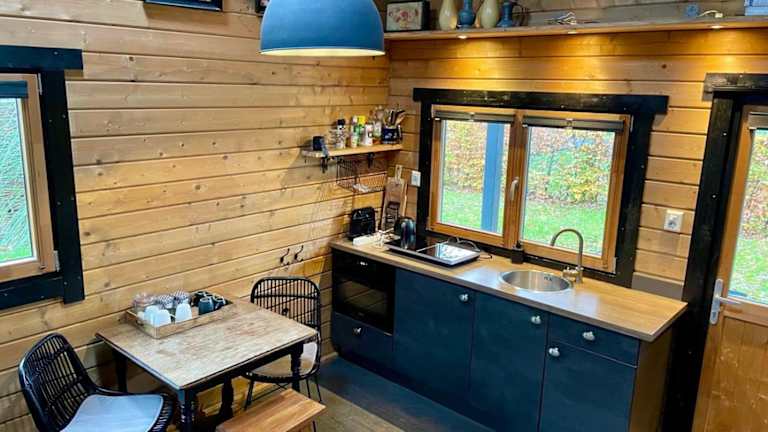 Im Landelijk gelegen houten huisje haben Sie die Möglichkeit, Ihre eigenen Mahlzeiten zuzubereiten. Die voll ausgestattete Küche bietet Ihnen alle notwendigen Utensilien. Alternativ können Sie in einem der nahegelegenen Restaurants speisen und lokale Spezialitäten genießen.