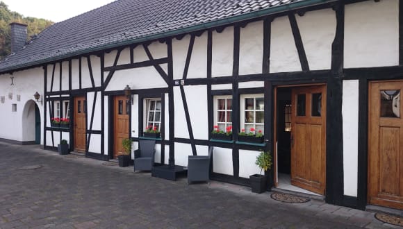 Das Hotel Altenbruecker Muehle liegt in der malerischen Stadt Overath, nur 6 km vom Stadtzentrum entfernt. Es befindet sich in einem wunderschönen 150 Jahre alten Fachwerkhaus neben einem Golfplatz. Die Lage bietet eine ruhige und idyllische Umgebung, ideal zum Entspannen und Erholen. Die Autobahn A4 ist nur 1 km entfernt und eine Bushaltestelle befindet sich direkt gegenüber dem Hotel, so dass Sie bequem die umliegenden Städte und Sehenswürdigkeiten erreichen können.