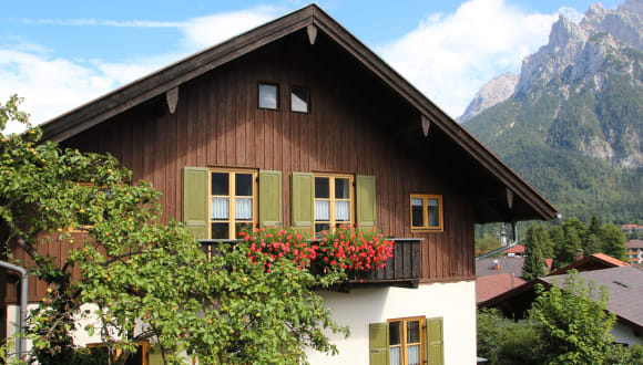 Das Landhaus Albrecht bietet gemütliche ****Ferienwohnungen (DTV-klassifiziert) in Mittenwald an. Die Unterkunft befindet sich in ruhiger Lage am Fuße des Wandergebietes Kranzberg, ist dabei aber nur fünf Gehminuten vom Ortszentrum entfernt. WLAN, Handtücher und Bettwäsche nutzen Sie kostenfrei. Alle Ferienwohnungen verfügen über einen separaten Wohn- und Schlafraum, eine komplett ausgestattete Küche (u.a. mit Geschirrspüler, Backofen, Mikrowelle und Kaffeemaschine), ein eigenes Bad mit Dusche, einen Südbalkon oder eine Terrasse mit Gebirgsblick. Zur Ausstattung gehören u.a. eine bequeme Sitzgruppe, Parkettboden, Flachbild-TV (Kabelanschluss), DVD-Player und Stereoanlage. Die Unterkunft befindet sich 200 m von der Kranzbergbahn, 500 Meter vom Ortszentrum und 1,2 km von der Karwendelbahn entfernt.