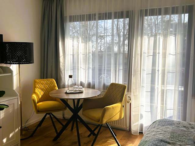 Die Unterkunft bietet Gästezimmer mit Blick auf den Park sowie Apartments. Familienzimmer sind ebenfalls verfügbar. Haustiere sind auf Anfrage kostenpflichtig gestattet, und es sind einige zusätzliche Dienstleistungen wie Babybetten für kleine Kinder möglich.