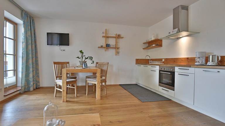 Jede Wohneinheit im Landhaus Appartement ist mit einem Balkon ausgestattet, von dem aus die Gäste einen Blick auf die umliegenden Berge genießen können. Zur Ausstattung gehören ein Kabel-Flachbild-TV, eine gut ausgestattete Küche mit Geschirrspüler, Ofen, Herdplatte und Wasserkocher, sowie ein eigenes Badezimmer mit Dusche und Haartrockner.