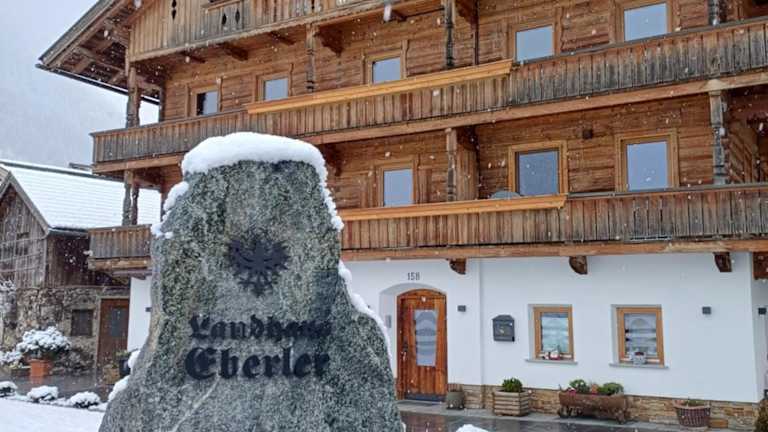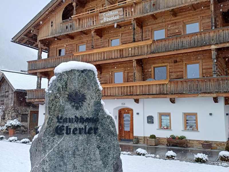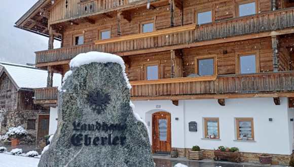 Die Zimmer im Landhaus Eberler sind mit einem Balkon ausgestattet und bieten Blick auf die Berge. Zur Ausstattung gehören ein Sitzbereich, ein Satelliten-Flachbild-TV und eine voll ausgestattete Küche mit Kühlschrank, Mikrowelle, Herdplatte, Toaster, Kaffeemaschine und Wasserkocher. Ein eigenes Badezimmer mit Dusche und Haartrockner ist ebenfalls vorhanden.