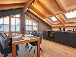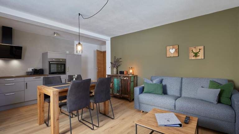 Die Wohneinheiten sind mit einer voll ausgestatteten Küche ausgestattet, die einen Esstisch, einen Kühlschrank, einen Geschirrspüler, einen Ofen sowie eine Kaffeemaschine und einen Wasserkocher umfasst.