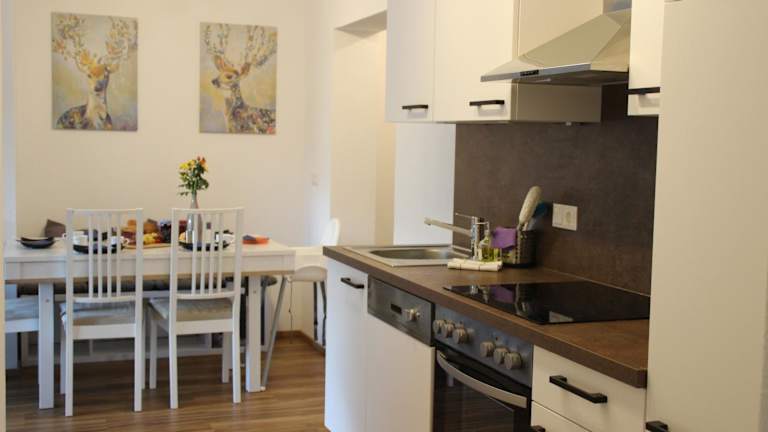 Die Ferienwohnung umfasst zwei Schlafzimmer sowie ein Wohnzimmer mit einem Flachbild-TV, der Satellitenkanäle empfängt. Des Weiteren gibt es eine voll ausgestattete Küchenzeile mit Kühlschrank und Geschirrspüler sowie ein Badezimmer mit Dusche. Handtücher und Bettwäsche werden zur Verfügung gestellt.