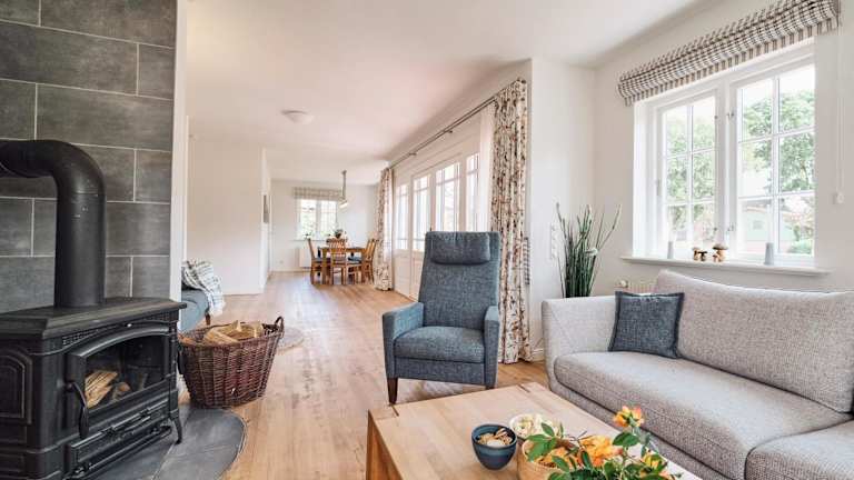Die Zimmer im Landhaus Markerup umfassen 5 Schlafzimmer und 3 Badezimmer, ausgestattet mit Dusche und Badewanne. Das Ferienhaus verfügt über eine Küche mit Kühlschrank, Geschirrspüler und Ofen sowie ein Wohnzimmer mit Sitz- und Essbereich. Handtücher und Bettwäsche werden bereitgestellt.