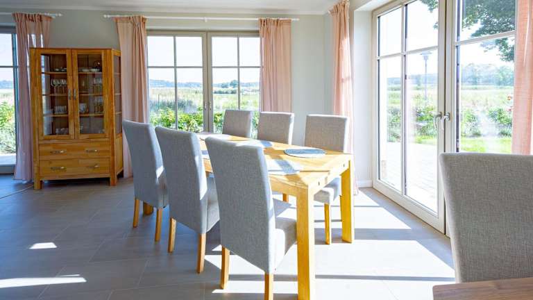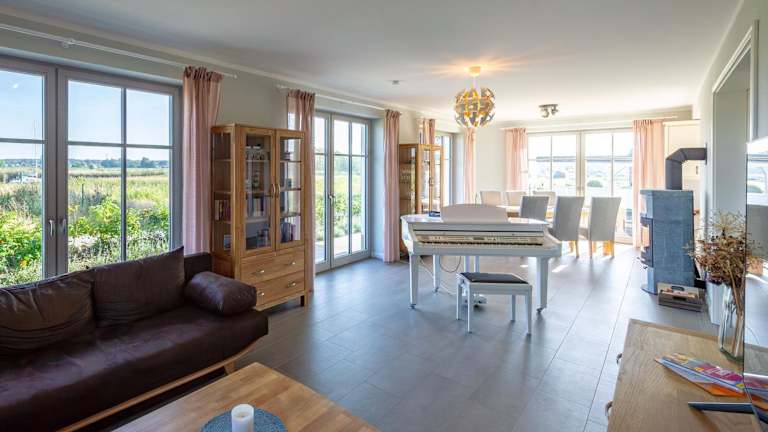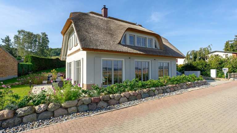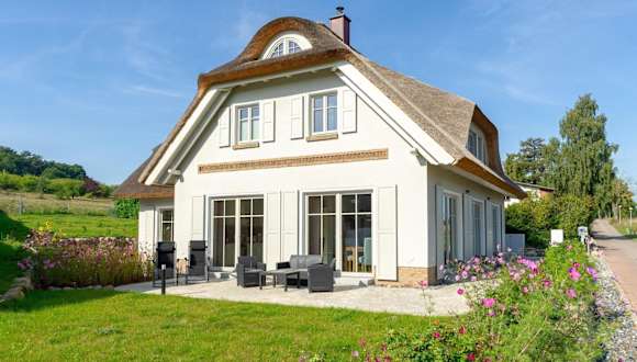 Das Landhaus Max in Moritzdorf bietet Übernachtungsmöglichkeiten mit einer luxuriösen Ausstattung unter einem Reetdach. Die Unterbringung umfasst eine Terrasse mit Seeblick sowie Annehmlichkeiten wie einen Kamin und eine Sauna, die den Gästen zur Verfügung steht.