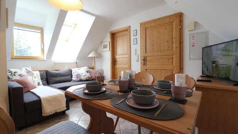 Jede Wohneinheit im Landhaus Nockalm ist gut ausgestattet und bietet einen Sitzbereich, ein Schlafsofa, einen Flachbild-TV mit Satellitenkanälen und eine gut ausgestattete Küche. Die Küche umfasst einen Kühlschrank, einen Geschirrspüler, eine Mikrowelle, eine Kaffeemaschine und einen Wasserkocher. Des Weiteren gehört zu jeder Unterkunft ein eigenes Badezimmer mit Dusche.