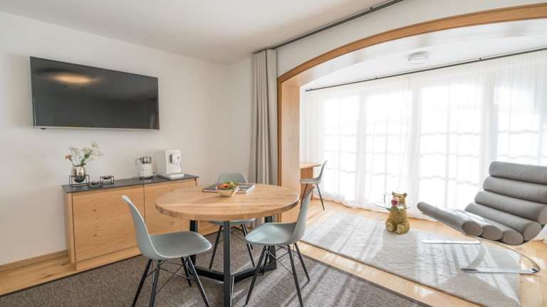Die Zimmer verfügen über Parkettböden, einen Essbereich, einen Flachbild-TV mit Satellitenkanälen und ein eigenes Bad mit Dusche und Haartrockner.