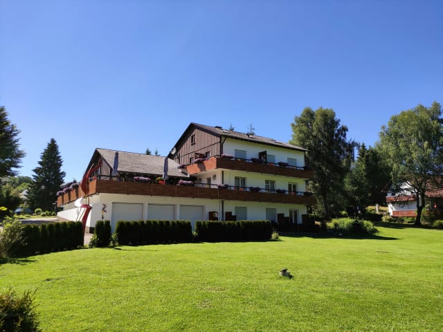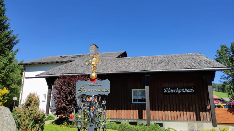 Die Unterkunft Landhotel Garni Schweizerhaus befindet sich in Schönwald, einer Ortschaft, die 24 km von der Neue Tonhalle und 37 km von der Adlerschanze entfernt liegt. Die Umgebung bietet eine naturnahe Atmosphäre und lässt sich durch einen Garten und eine Terrasse ergänzen.