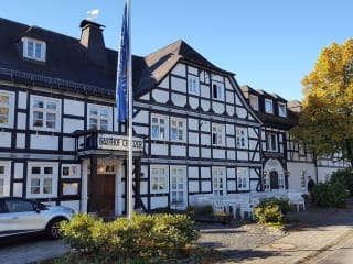 Typisch im Sauerländer Fachwerkstil erbaut empfängt das Landhotel & Gasthof Cramer seine Gäste mit einer kuscheligen Atmosphäre und dem Charme eines kleinen Landhotels. Das Haus wurde 1788 erbaut und steht heute wie damals für die typische Sauerländer Gastlichkeit. Der unter Denkmalschutz stehende Gasthof Cramer in der Dorfmitte des idyllischen Ortes Hirschberg erwartet seine Gäste in gemütlichem Landhausambiente.