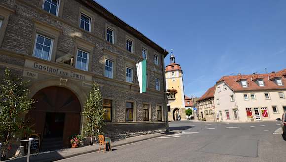 Das Gasthaus "Zum Goldenen Löwen" liegt inmitten der Weinregion Mainfranken im historischen Markgrafenstädtchen Mainbernheim im Landkreis Kitzingen. Mainbernheims Gründung geht auf das Jahr 752 zurück. Die imposante Stadtmauer umgibt die Altstadt des unterfränkischen Mainbernheim als Ringmauer mit Toren, Türmen und Grabenresten. Bis heute haben sich weite Teile der Anlage erhalten, die noch aus der Zeit der Stadterhebung aus dem Beginn des 15. Jahrhunderts stammt. Besonders die wunderschönen Stadtgräben dafür sind inzwischen ein beliebtes Postkartenmotiv. Das Landhotel befindet sich direkt vor dem unteren Turm der Stadt. Die beiden bekannten "Bärleswege" beginnen vor der Haustüre, die Mainbernheim Weinwanderung in unmittelbarer nähe. Jeweils ca. 3 km entfernt finden Sie das Hallen- und Freibad in Kitzingen sowie das Hallenbad in Iphofen. Der Freizeitpark Geiselwind ist ca. 23 km entfernt. Das Freilandmuseum Bad Windsheim sowie die Therme Bad Windsheim sind 27 km entfernt. Die Fahrrad-Highlights Kitzingen (Alte Mainbrücke), Ochsenfurt (alte Fachwerkhäuser), Marktbreit (Malerwinkelhaus) und Dettelbach (Weinstadt) sind über Radwege erreichbar.