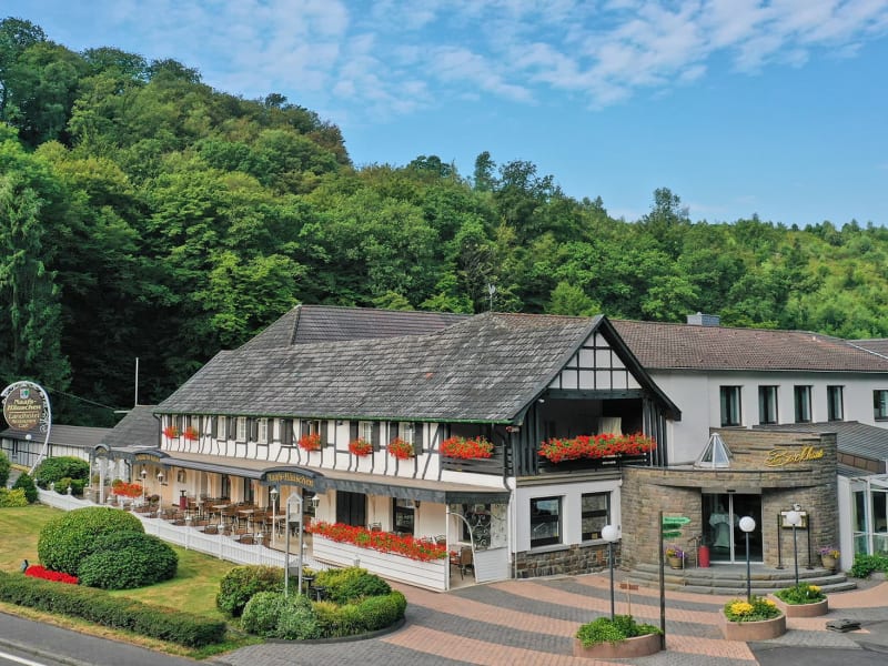 Inmitten der Wanderwege des unteren Aggertals begrüßt Sie dieses moderne Landhotel in Lohmar mit gemütlichen Zimmern mit kostenfreiem WLAN-Zugang, ausgezeichneter Küche und einer schnellen Zugverbindung zum Flughafen Köln-Bonn und zur Kölnmesse. Die örtlichen Bahnverbindungen bringen Sie in nur 22 Minuten zur Kölner Messe und dem Flughafen. Moderne Konferenzeinrichtungen stehen für effektive Sitzungen bereit. Komplettieren Sie Ihren Aufenthalt im Restaurant, wo Ihnen herzhafte Gerichte und ein Buffet mit Speisen angeboten werden oder genießen Sie ein Steak vom heißen Stein in der rustikalen-gemütlichen Schänke 'im alten Kuhstall'. Das Landhotel Naafs-Häuschen ist der perfekte Ausgangspunkt für eine Reihe von sportlichen Aktivitäten wie Golfen, Wandern, Nordic Walking und Radfahren. Tagungshotel im Rheinland Wir sind Ihr Seminar- und Tagungsprofi seit 30 Jahren mit mehr als monatlich 500 zufriedenen Seminar- oder Tagungsteilnehmern. Die Seminarveranstalter schätzen die ruhige aber gut erreichbare Lage unseres Tagungshotels in Lohmar. Unser Seminarhotel im schönen Aggertal liegt im Einzugsgebiet von Köln und Bonn, welche in 30 Autominuten erreichbar sind. Die Autobahnen A3 und A4 sind 10 Minuten entfernt. Der City Bahnhof und der Flughafen befinden sich nur 20 bis 30 Autominuten entfernt. Wir sind für Seminare mit 10 bis 20 Personen aber auch für Tagungen bis 50 Personen ausgerichtet. Sie finden bei uns eine persönliche, fast familiäre Ansprache und Top-Leistungen zum richtigen Preissegment. Ein weiterer Vorteil unserer Lage mitten in der Natur ist auch, dass die Teilnehmer als Team zusammenbleiben und den Abend gemütlich in unseren Restaurants ausklingen lassen. Wir bieten eine Atmosphäre die Nähe zu den Themen "Teambuilding", "Motivation" oder "Coaching" schafft.