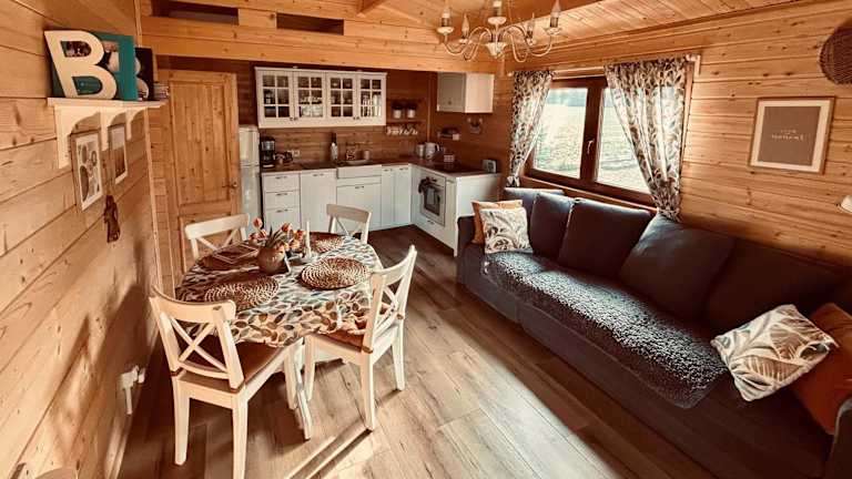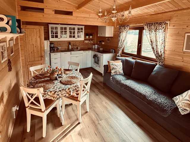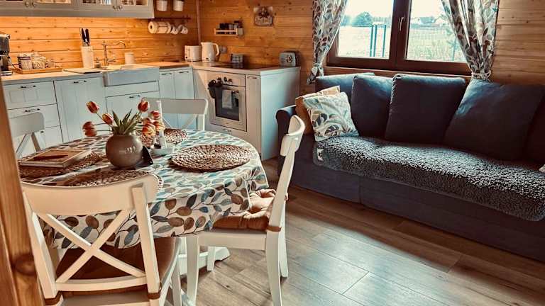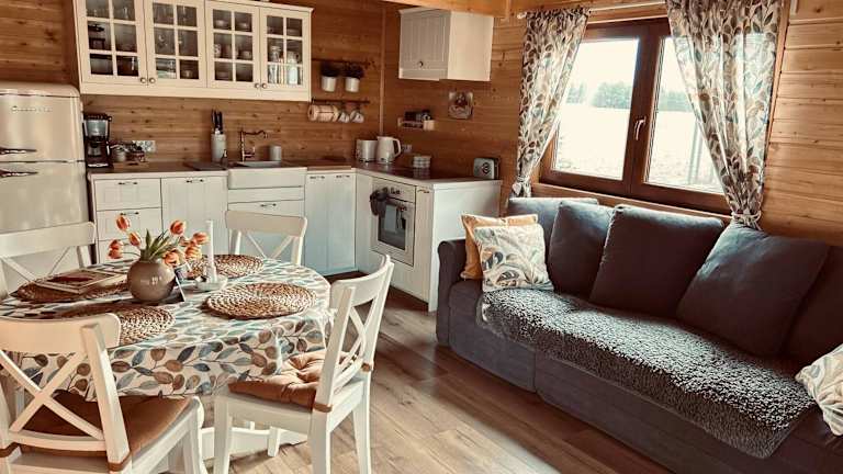 Das klimatisierte Ferienhaus im ŁAP LAS Wiktorowo verfügt über ein Schlafzimmer, ein Wohnzimmer und eine voll ausgestattete Küchenzeile mit einem Geschirrspüler und einem Wasserkocher. Das Badezimmer ist mit einer Dusche und einem Haartrockner ausgestattet. Handtücher und Bettwäsche werden gestellt. Die Unterkunft bietet kostenfreies WLAN und kostenfreie Privatparkplätze.