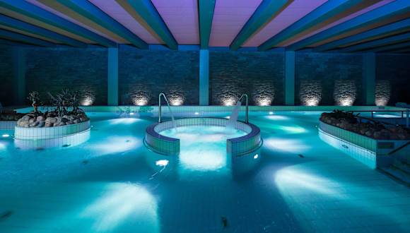 Das Hotel verfügt über einen Innen- und Außenpool, in denen Sie sich entspannen und erfrischen können. Für Fitnessbegeisterte gibt es ein Fitnessstudio und verschiedene Sportangebote wie Aerobic und Radsport. Im Wellnessbereich können Sie in der finnischen Sauna entspannen oder Massagen genießen. Für Kinder gibt es einen speziellen Kinderpool.