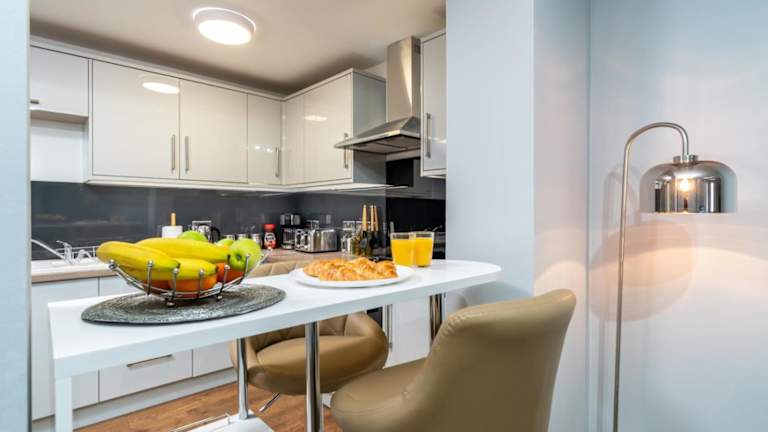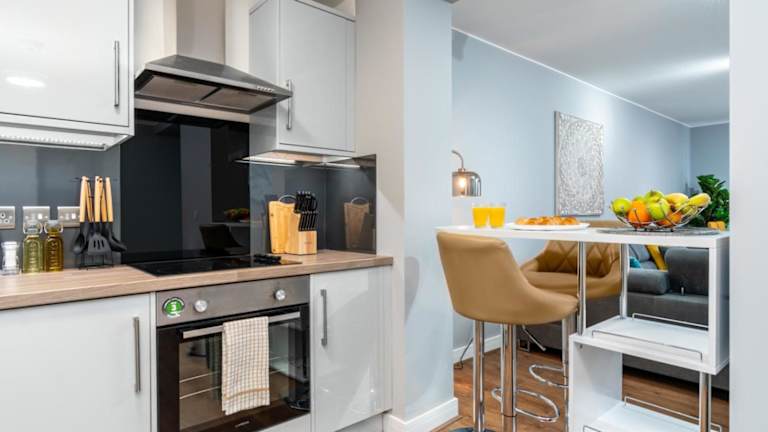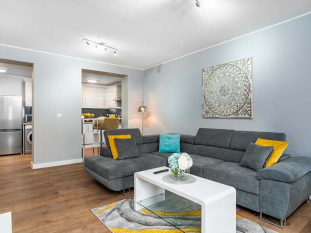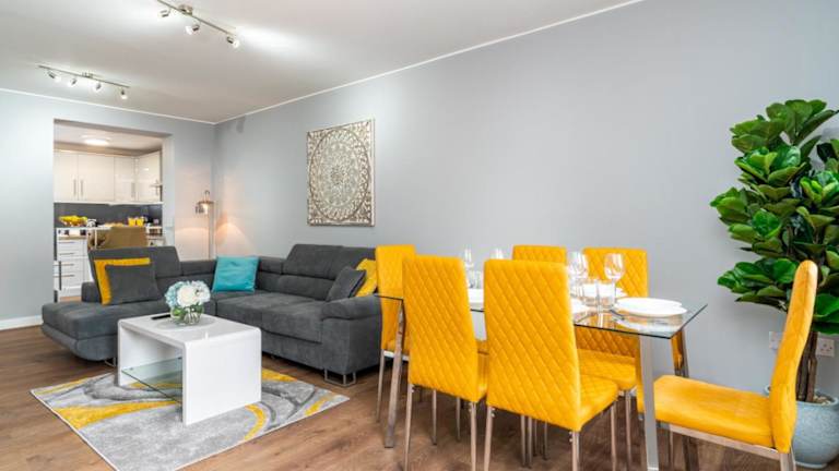 Das hübsche Apartment verfügt über 2 Schlafzimmer und bietet Platz für Familien oder Gruppen von Freunden. Es gibt eine voll ausgestattete Küche mit Kühlschrank und Backofen, in der Sie Ihre eigenen Mahlzeiten zubereiten können. Entspannen Sie sich im gemütlichen Sitzbereich und genießen Sie Ihre Lieblingssendungen auf dem 55-Zoll-4K-Smart-TV mit Netflix. Das Apartment verfügt auch über ein Badezimmer mit Dusche und wird mit Handtüchern und Bettwäsche ausgestattet.