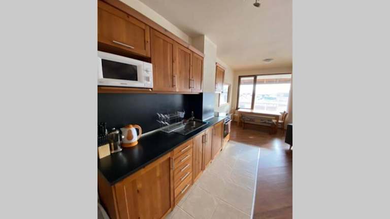 Das Apartment verfügt über 2 Schlafzimmer, ein Wohnzimmer und eine voll ausgestattete Küche mit einem Kühlschrank und einem Backofen. Es gibt auch 2 Badezimmer mit einer Badewanne. Die Zimmer sind geräumig und komfortabel eingerichtet, und Handtücher und Bettwäsche werden gestellt. Vom Balkon und der Terrasse aus haben Sie einen atemberaubenden Blick auf die Berge.