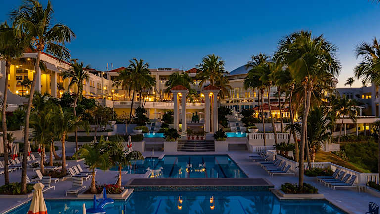 Las Casitas Village at El Conquistador bietet Übernachtungsmöglichkeiten mit einem Außenpool, einem Privatparkplatz, einem Fitnesscenter, einem Garten und einer rund um die Uhr besetzten Rezeption. Zudem gibt es ein Restaurant, einen Wasserpark und eine große Terrasse. Die Unterkunft bietet weitere Annehmlichkeiten wie Abendunterhaltung und einen Geldautomaten.