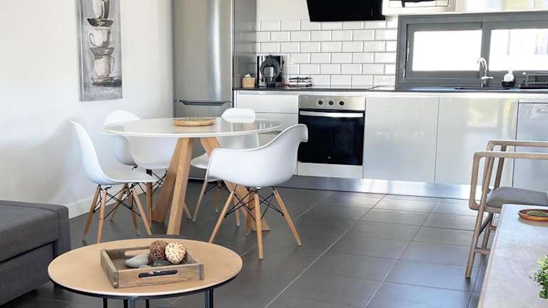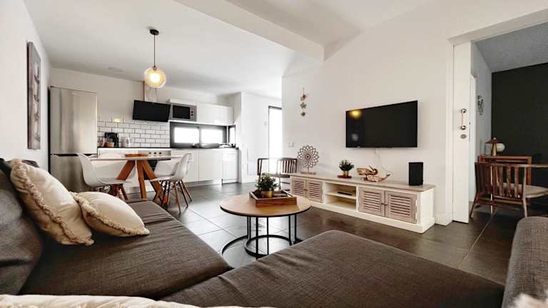 Die Ferienwohnung beinhaltet 1 Schlafzimmer, ein Wohnzimmer sowie eine gut ausgestattete Küche mit Kühlschrank und Geschirrspüler. Das Badezimmer ist mit einer Dusche ausgestattet. Zur Ausstattung gehören ein Flachbild-TV, Handtücher und Bettwäsche. Des Weiteren gibt es eine Terrasse mit Bergblick und die Unterkunft verfügt über einen eigenen Pool.