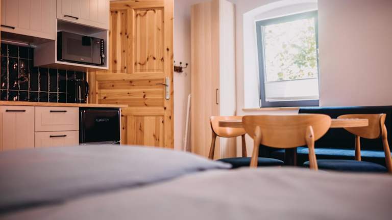 Im Las Skarpa apartamenty können Sie Ihre eigenen Mahlzeiten zubereiten. Die Apartments verfügen über eine voll ausgestattete Küche mit allen notwendigen Geräten. Darüber hinaus können Sie auch die Grillmöglichkeiten in der Unterkunft nutzen, um im Freien zu speisen.