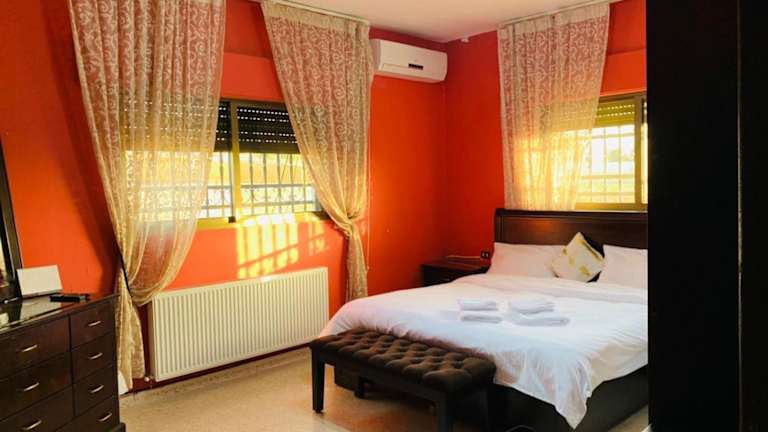 Verbringen Sie einen unvergesslichen Aufenthalt in Laura's Modern Villa in Madaba. Die Unterkunft bietet geräumige und gut ausgestattete Villen mit kostenfreiem WLAN und einer Terrasse. Genießen Sie den Komfort von klimatisierten Zimmern, einer voll ausgestatteten Küche und mehreren Badezimmern. Entspannen Sie im Whirlpool und nutzen Sie die Möglichkeit, ein Auto direkt in der Villa zu mieten. Die Unterkunft befindet sich in der Nähe von Sehenswürdigkeiten wie dem Berg Nebo und der griechisch-orthodoxen Basilika St. Georg.