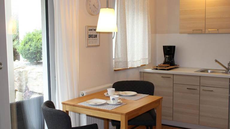 Das Lautertal Zinne bietet Selbstversorgungsmöglichkeiten in Form einer gut ausgestatteten Küchenzeile. Gäste können ihre eigenen Mahlzeiten zubereiten und diese auf der Terrasse oder im gemütlichen Innenbereich genießen. Alternativ können sie auch die umliegenden Restaurants erkunden und die lokale Küche kennenlernen.