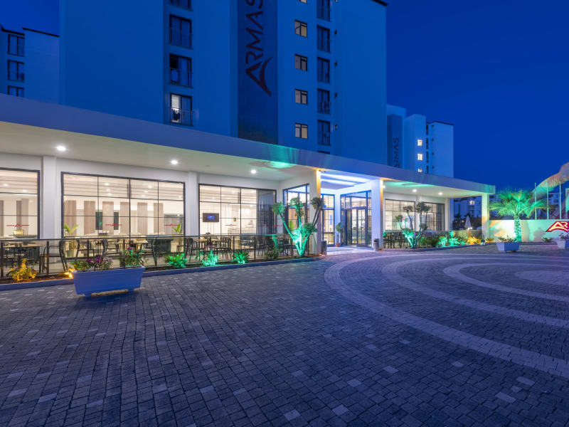 Das Hotel allgemein Unser 5 Sterne Hotel die sich auf einer Fläche von 10.000 m² befindet, ist 1000 m vom Meer entfernt und es wird ein regelmäßiger Shuttleservice zum eigenen Privatstrand angeboten. Die Region heißt Lara – Kundu / Antalya. Wir sind von Antalya Flughafen nur 15 Km entfernt. Das Hotel hat 239 Zimmer. Unser Konzept heißt "TUI Smart“. Alle Verkaufsstellen mit Ausnahme der Hauptrestaurants bieten einen A'la Carte Service an. Für Reservierung und weitere Informationen steht unserer Gästebetreuung Abteilung gerne zur Verfügung. Wir möchten sie gerne darüber informieren, dass das Außen Sportplatz, Türkisches Bad, Sauna ,Sonnenliegen, Sonnenschirm, Strandtuch, Aerobic, Gymnastik, Wassergymnastik, Wasserball, Strandspiele und Boccia, Animationsprogramm, Abendshow, Dartspiel, Pool und Strand Snack Bar, Tresor in der Zimmer, WLAN in der Lobby und außen Anlage, Türkische Nacht, Poolspiele, Mini Club kostenlos sind. Zimmer / Unterbringung Alle Standard Zimmer haben ein Doppelbett und ein Klappsofa. Familienzimmer bestehen aus ein Schlafzimmer mit einem Doppelbett und eine Halle mit einem Etagenbett & ein Klappsofa. Zwischen den Zimmer und die Halle gibt es ein optischer Separator. Unserer Economy Zimmer haben die gleiche Austattung und befinden sich aber im Erdgeschoss. Alle Zimmer haben: Badezimmer (mit Dusche), SAT-TV, einen Safe, eine Minibar, Laminatboden, Haartrockner und Direktwahl Telefon. Das Internet ist Kostenlos in allen Zimmern. Gastronomie Wir bieten in unser Hauptrestaurant eine köstliche internationale Auswahl. Tagsüber zwischen 11:00 – 16:00 Uhr können Sie sich mit unserer Eiscreme Service Erfrischen. Türkische-Pfanne / Gözleme, an der Pool und am Strand Snacks und Konditorei Services sind auch vorhanden. Kalt oder warm, mit oder ohne Alkohol die Getränke stehen in verschiedene Bars für unsere Gäste gerne zur Verfügung. Für den A’la Carte Restaurant Reservierung bitten wir Sie kurz an die Gästebetreuung Abteilung zu anwenden. Sport & Unterhaltung Unsere Schwimmbäder sind für die Aktivitäten mit Animation, Relax Pool ohne Animation für Sie da. Für die kleinen befindet sich auch ein Kinder Pool. In unserem Aqua-Park gibt es 5 verschiedene Wasserrutsche. Die Aktivitäten mit Animation sind Dartspiel, Beachvolley, Wasserball, Tischtennis, verschiedene Spiele und Turniere mit Animation, Abends Shows, Gala Nacht, Türkische Nacht, Live Musik und Tanzabend, Mini Club, Kinderanimation, Kinder Spielpark. Sonstige Einrichtungen und Services Alkoholische Luxus Getränke, Zimmerservice, Wassersport, Telefon, Fax, Kopie, Wäscherei und chemische Reinigung, Babysitter, Arzt, Geschäfte, Spa-Dienstleistungen, A’la Carte Restaurant (mit Reservierung), Wasserpfeife, Autovermietung.