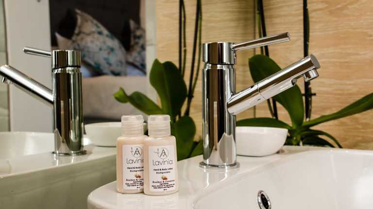 Das Lavinia Lifestyle befindet sich auf einer malerischen Weinfarm, nur 12 km von der charmanten Stadt Stellenbosch entfernt. Von der Unterkunft aus haben Sie einen atemberaubenden Blick auf den Tafelberg und den Atlantischen Ozean. Die Lage ist ideal für Naturliebhaber und Weinkenner, da Sie die Schönheit der umliegenden Landschaft und die Weine der Region erkunden können. Der internationale Flughafen Kapstadt ist nur 20 km entfernt und das malerische Muizenberg erreichen Sie nach einer 30-minütigen Fahrt.