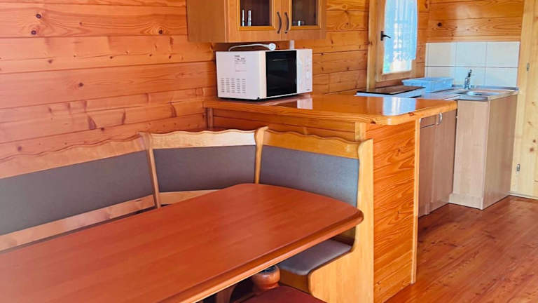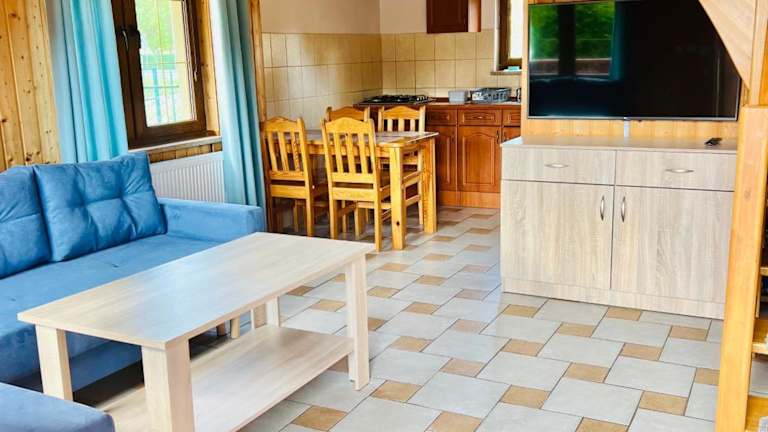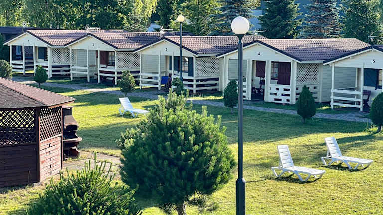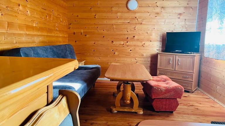 Die Unterkünfte im Lazur domki wypoczynkowe sind komfortabel und gut ausgestattet. Jede Unterkunft verfügt über eine Terrasse, auf der Sie die frische Luft und die Aussicht genießen können. Zur Ausstattung gehören auch ein Flachbild-TV und ein eigenes Bad mit Dusche. Die Küche ist mit allen notwendigen Geräten wie Kühlschrank, Mikrowelle, Kochfeld und Wasserkocher ausgestattet. Hier können Sie Ihre eigenen Mahlzeiten zubereiten und sich wie zu Hause fühlen.