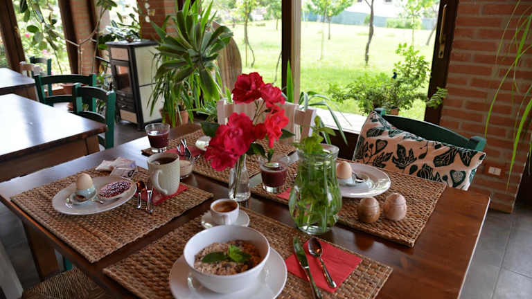 Die Unterkunft bietet ein Restaurant, das internationale Küche serviert, sowie ein tägliches Frühstücksbuffet mit italienischen und vegetarischen Optionen. Auf Anfrage sind zudem vegetarische, milchfreie und vegane Optionen erhältlich.