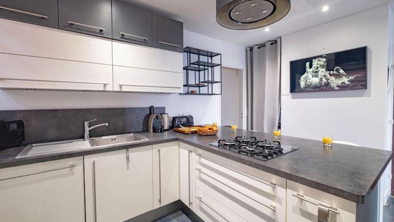 Die Ferienwohnung umfasst 3 Schlafzimmer, ein Wohnzimmer, eine gut ausgestattete Küche, 2 Badezimmer mit Dusche und Badewanne sowie eine Terrasse mit Stadtblick. Zur Ausstattung gehören ein Satelliten-Flachbild-TV, eine Kaffeemaschine sowie Handtücher und Bettwäsche.
