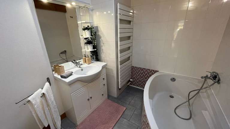 Die Ferienwohnung verfügt über zwei Schlafzimmer, eine voll ausgestattete Küche mit Kühlschrank und Geschirrspüler sowie zwei Badezimmer mit Dusche, Haartrockner und Waschmaschine. Handtücher und Bettwäsche sind vorhanden. Zur weiteren Ausstattung gehören Nichtraucherzimmer, WLAN, Heizung und Familienzimmer. Es sind auch Sicherheitsmaßnahmen wie Videoüberwachung und Rauchmelder vorhanden.