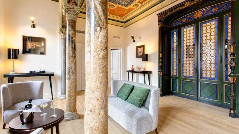 Le case di Andrea - Roof Suite Rome ist eine elegante Unterkunft mit historischen Elementen, einschließlich Marmorsäulen und Deckenfresken. Die Pension bietet eine Dachterrasse, auf der Aperitifs genossen werden können, sowie eine Gemeinschaftsterrasse für das Frühstück. Das Haus ist rauchfrei und für Erwachsene vorgesehen.
