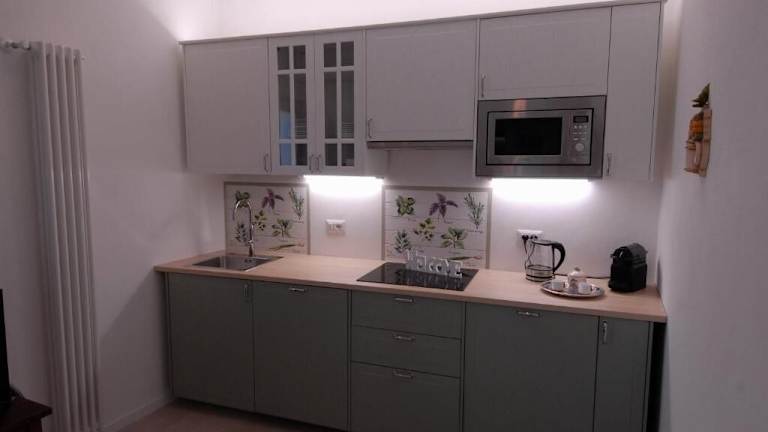 Die Wohneinheiten verfügen über eine voll ausgestattete Küche mit einem Esstisch, einem Kühlschrank, einem Geschirrspüler, einem Ofen sowie einer Kaffeemaschine und einem Wasserkocher.